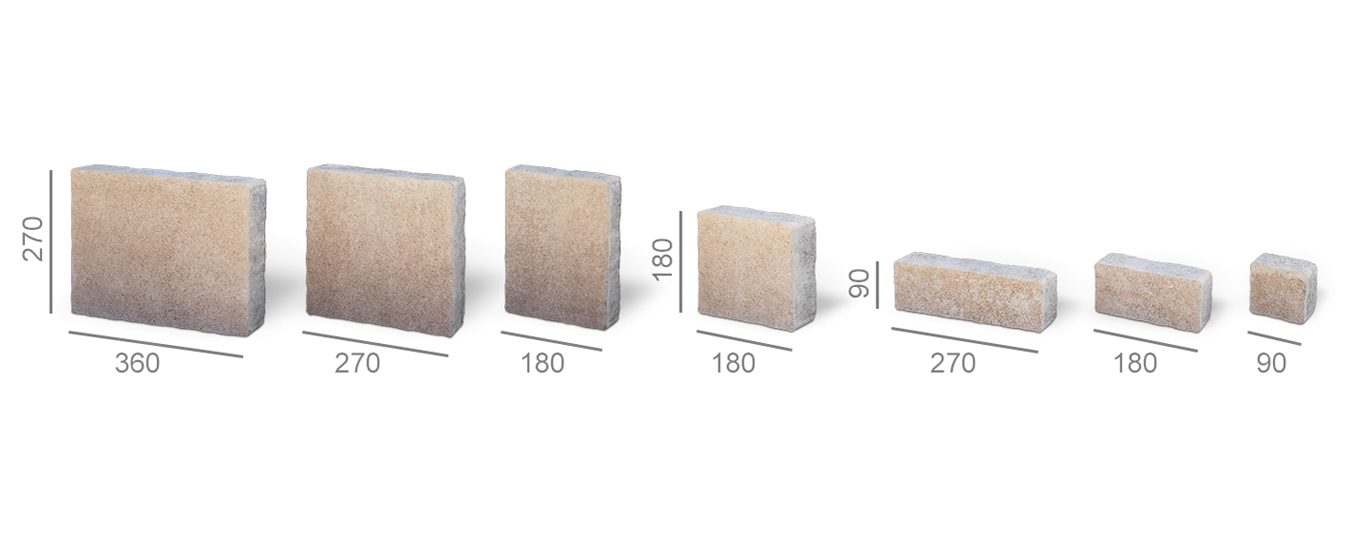 Бруківка Концепт вирізняється завдяки яскравому контрасту великих та дрібних елементів, що входять до даного комплекту. Ця різниця в розмірах та конфігурації створює при замощенні цікавий ефект та запобігає одноманітності.
