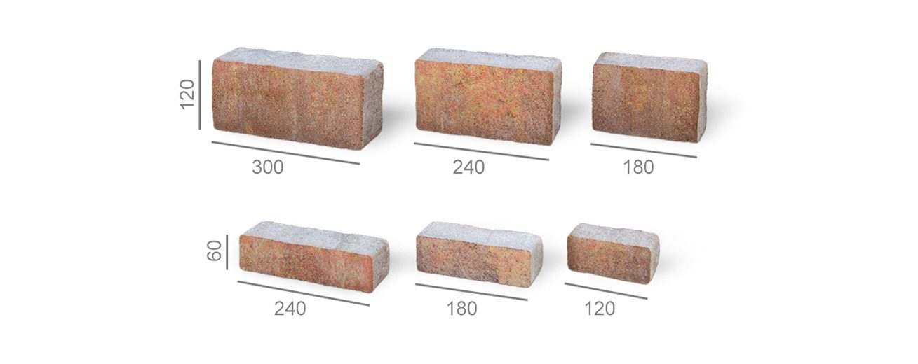 Комплект Променада В налічує шість елементів прямокутної форми. Краї та поверхня бруківки мають незначні нерівності, що надає виробу більш природного та невимушеного вигляду.