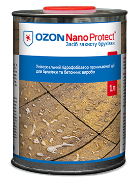 OZON Nano Protect® – універсальний  гідрофобізатор проникаючої дії, спеціально розроблений для захисту бруківки та бетонних виробів від проникнення вологи, впливу навколишнього середовища, сприяє продовженню термінів експлуатації, а також перешкоджає появі висолів, наростів та зеленого рослинного нальоту.