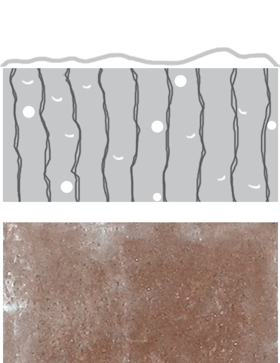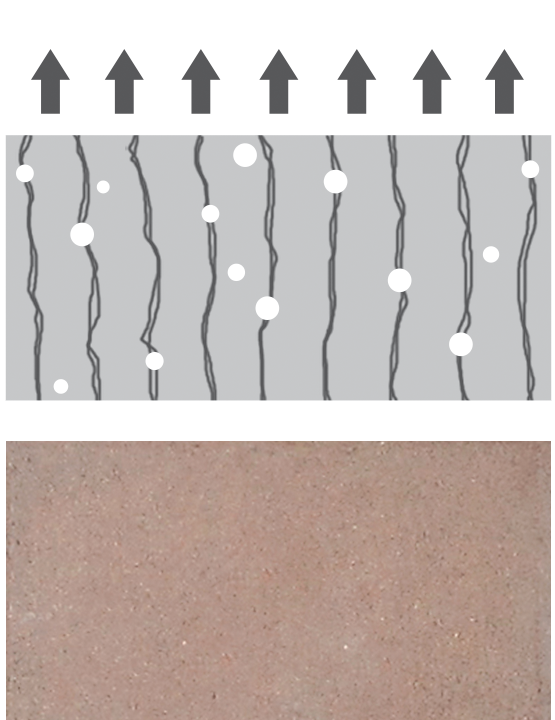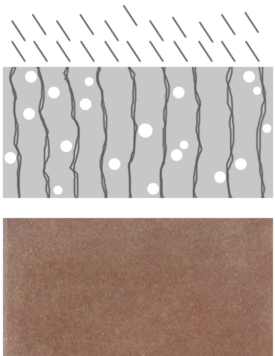 Якщо капіляри, котрі знаходяться у бетоні, наповнені водою до рівня їх виходу на поверхню, карбонат кальцію на поверхні таких бетонних виробів має вигляд рівномірного світлого нальоту.